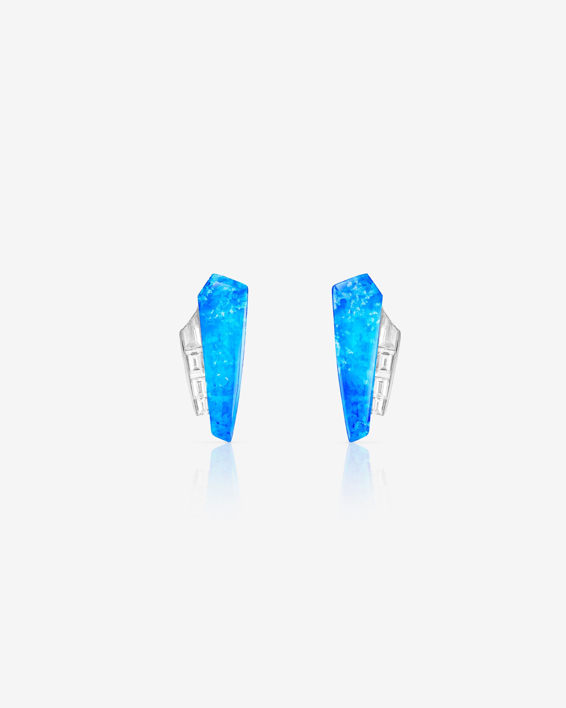 The eye-catching Black Opalescent Crystal Haze emanates from Slimline Cuff Earrings, set with baguette cut White Diamonds.