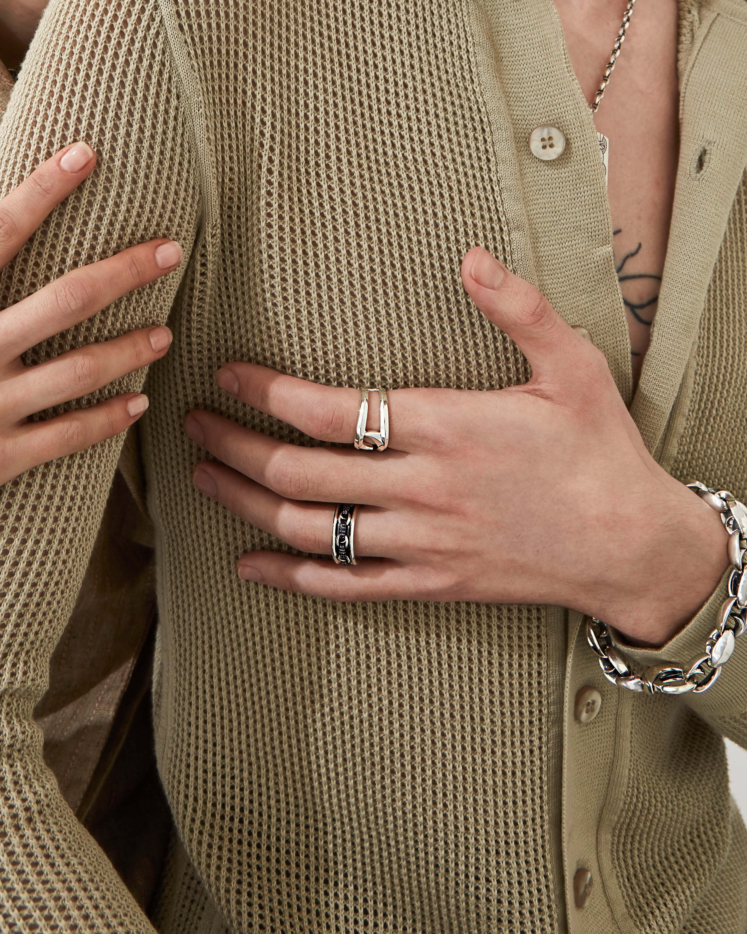Spin but be careful; the Sterling Silver Classic Link Spinning Band features a bed of rotating thorns set with black Sapphires.