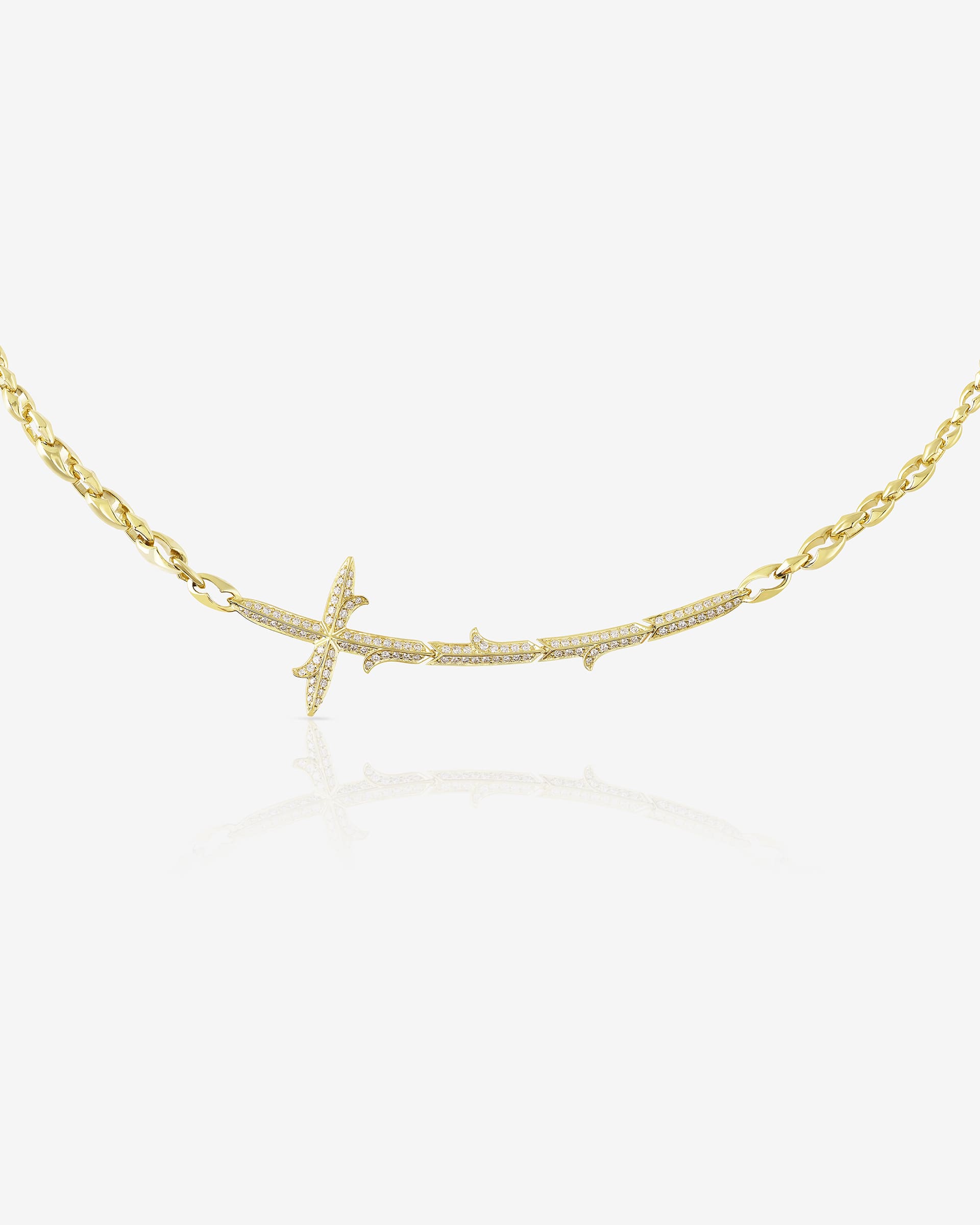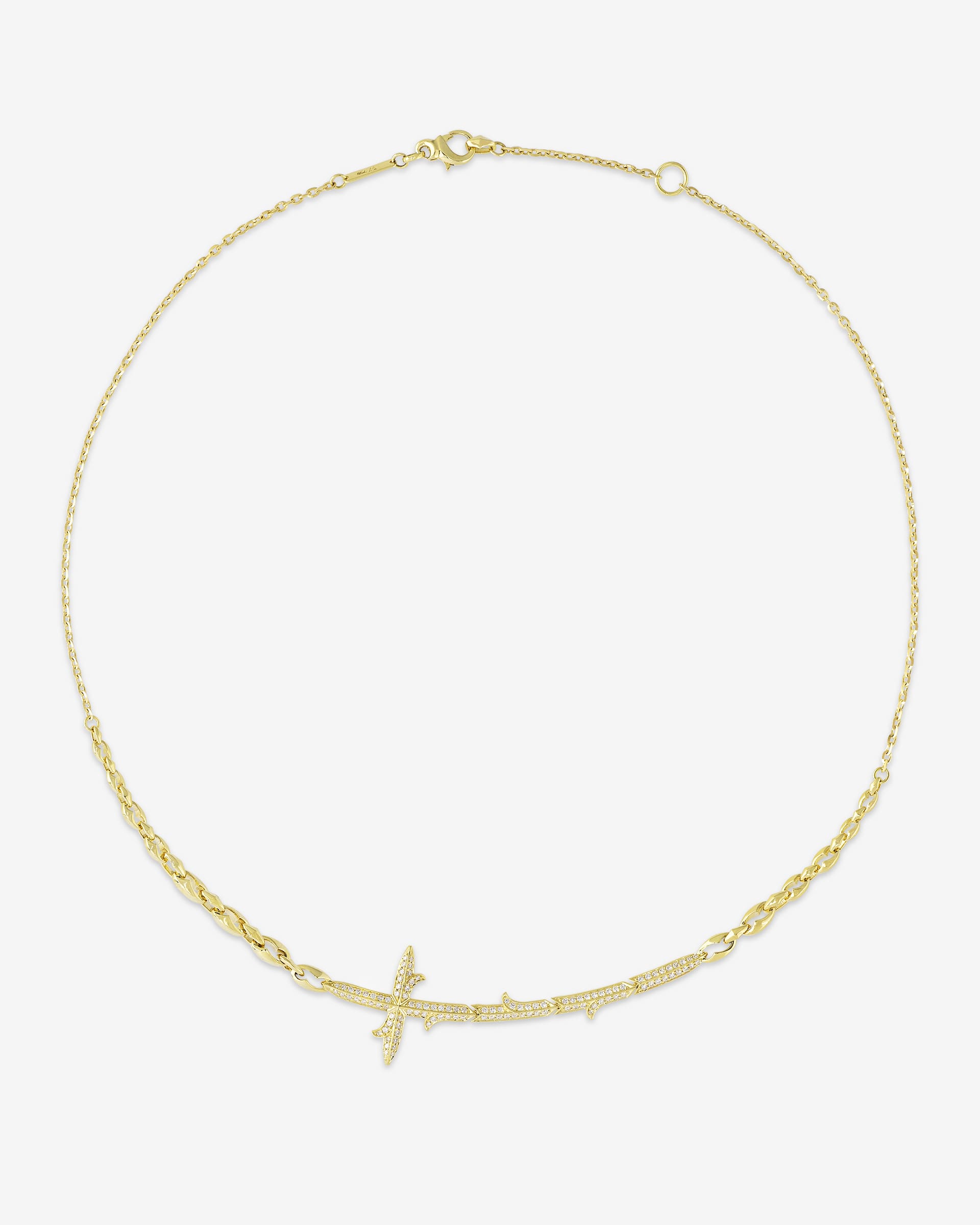 Love is a dagger of thorns; the Very Cross Necklace features a cross of White Diamond pavé handcrafted in recycled 18ct Yellow Gold.