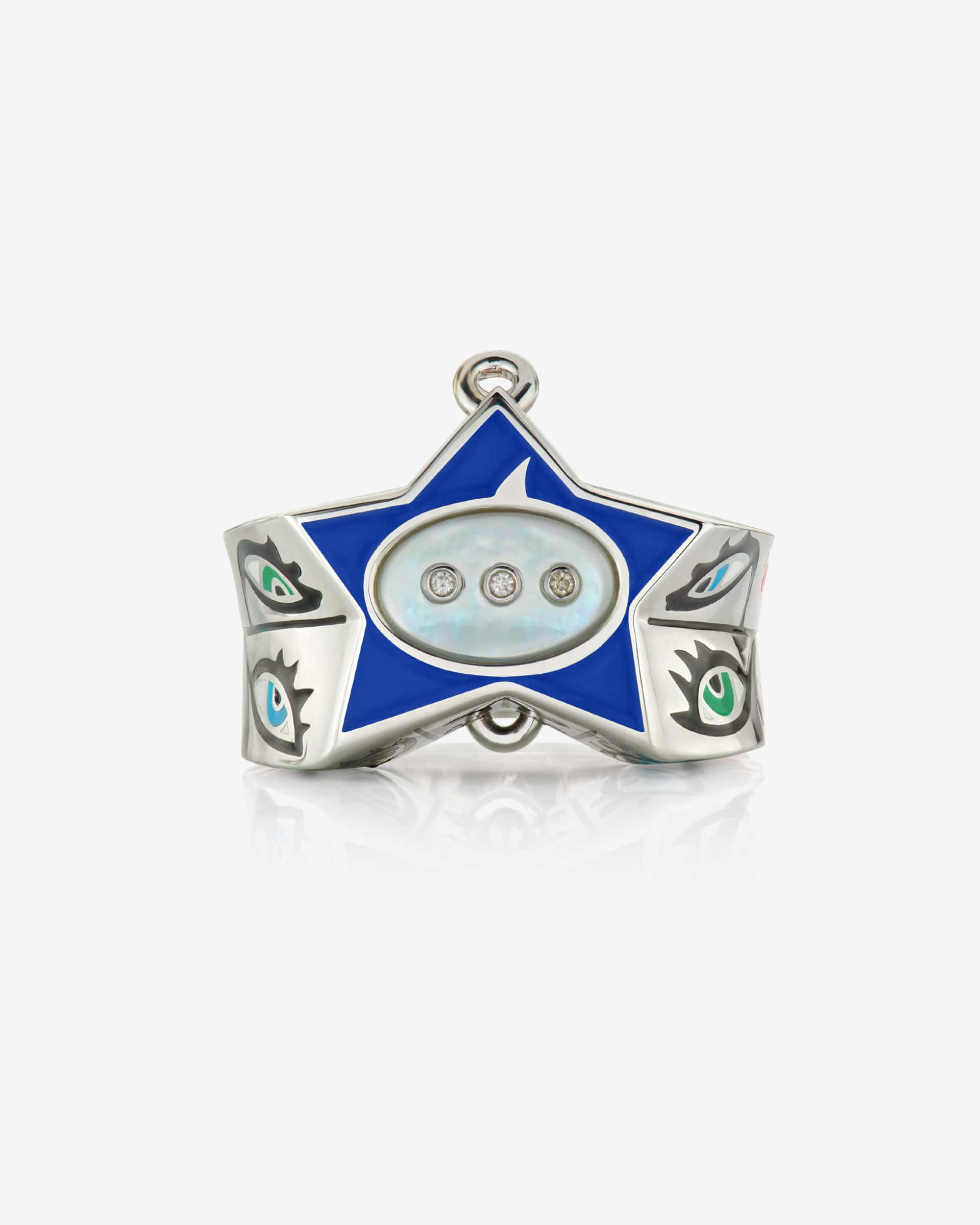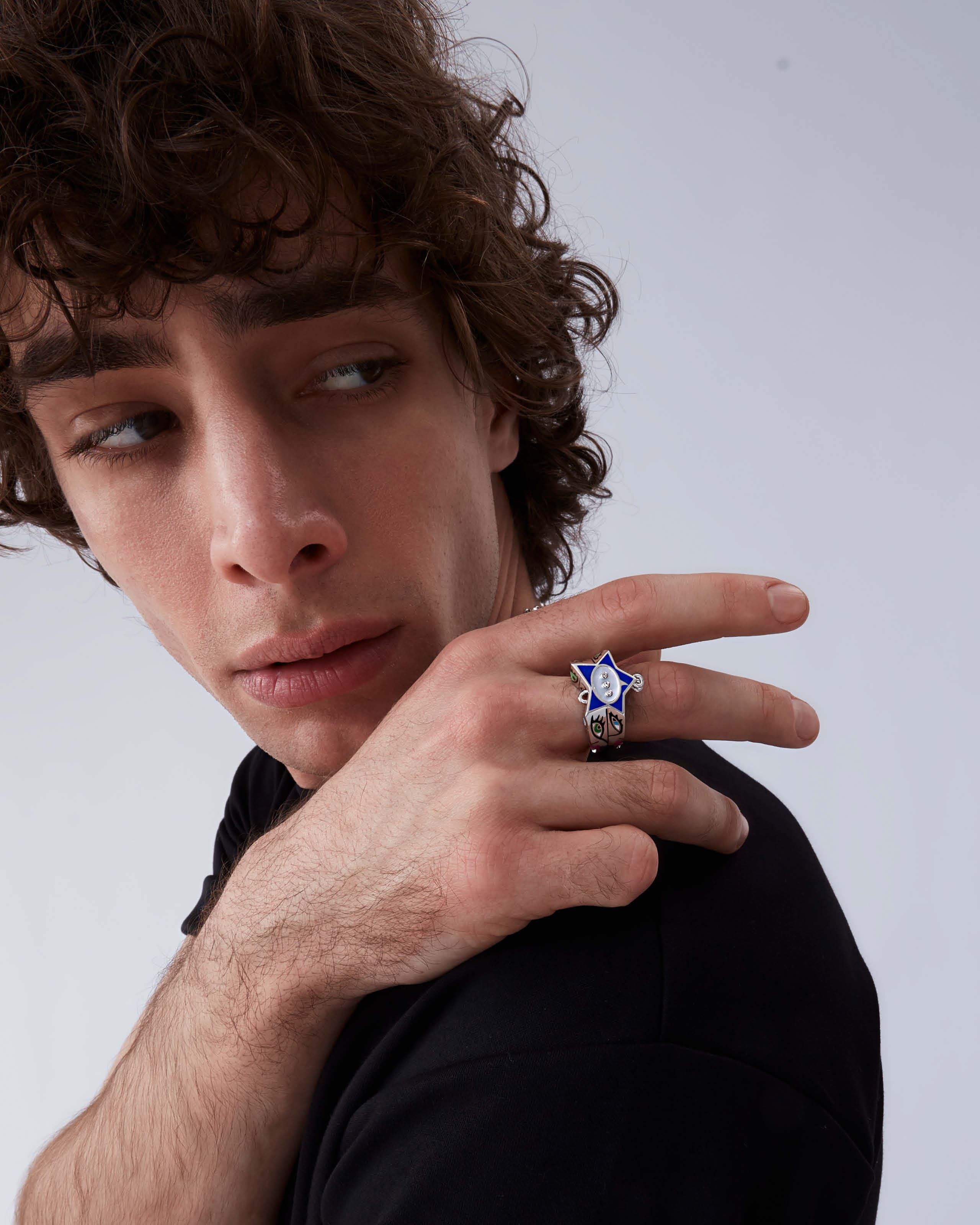 Limited to a total production of 640 pieces, across 8 colour editions, the GOSSIP Ring in Sterling Silver is visualised with three dimensional mouths, eyes and ears captured midst careless whisper. With social media often the culprit for amplifying hearsay, messenger speech bubbles are incorporated into the design showcased on top of the ring.