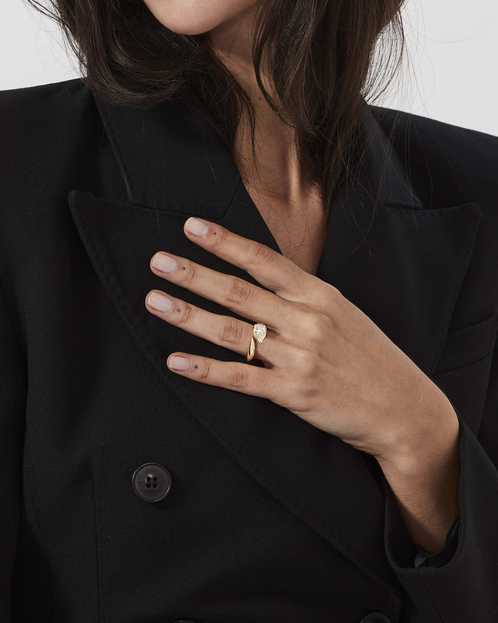 Our collections are crafted with recycled gold and silver, offering Fairtrade Gold and Single Mined Gold by request for bespoke commissions, with diamonds certified by the Kimberley Process Certificate Scheme.