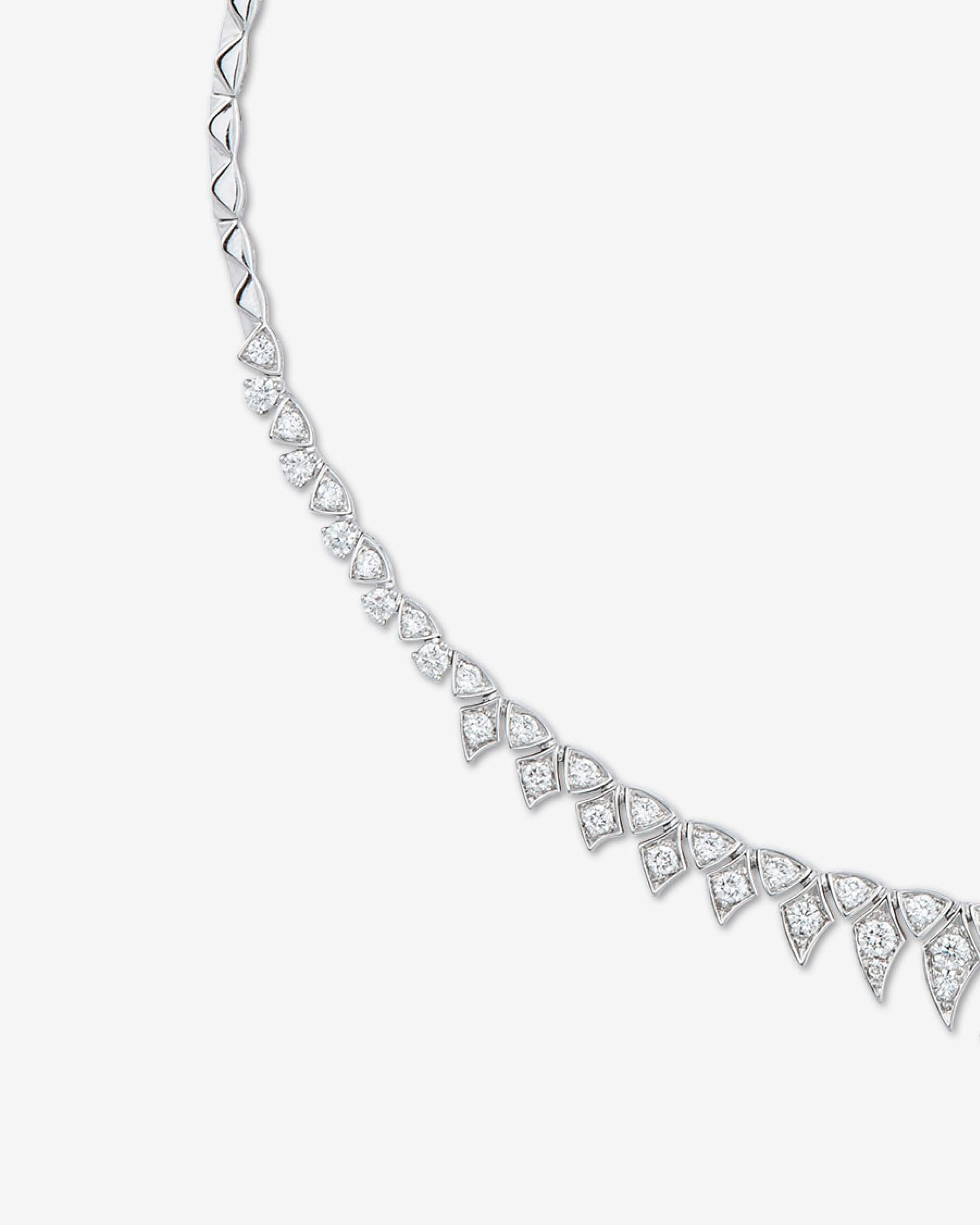 • White Diamond Pavé Tail Feather Collar in 18ct white gold with white diamond pavé, sculptural feather-inspired fine jewellery