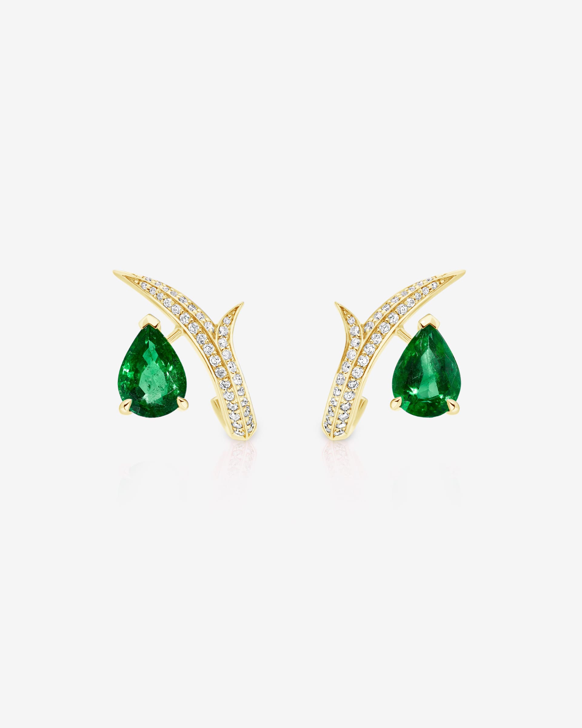 Denoting the bittersweet nature of pleasure and pain, the Pear Studs feature a pair of pear-shaped Emeralds accentuated with 18ct Yellow Gold thorns set with White Diamond pavé.