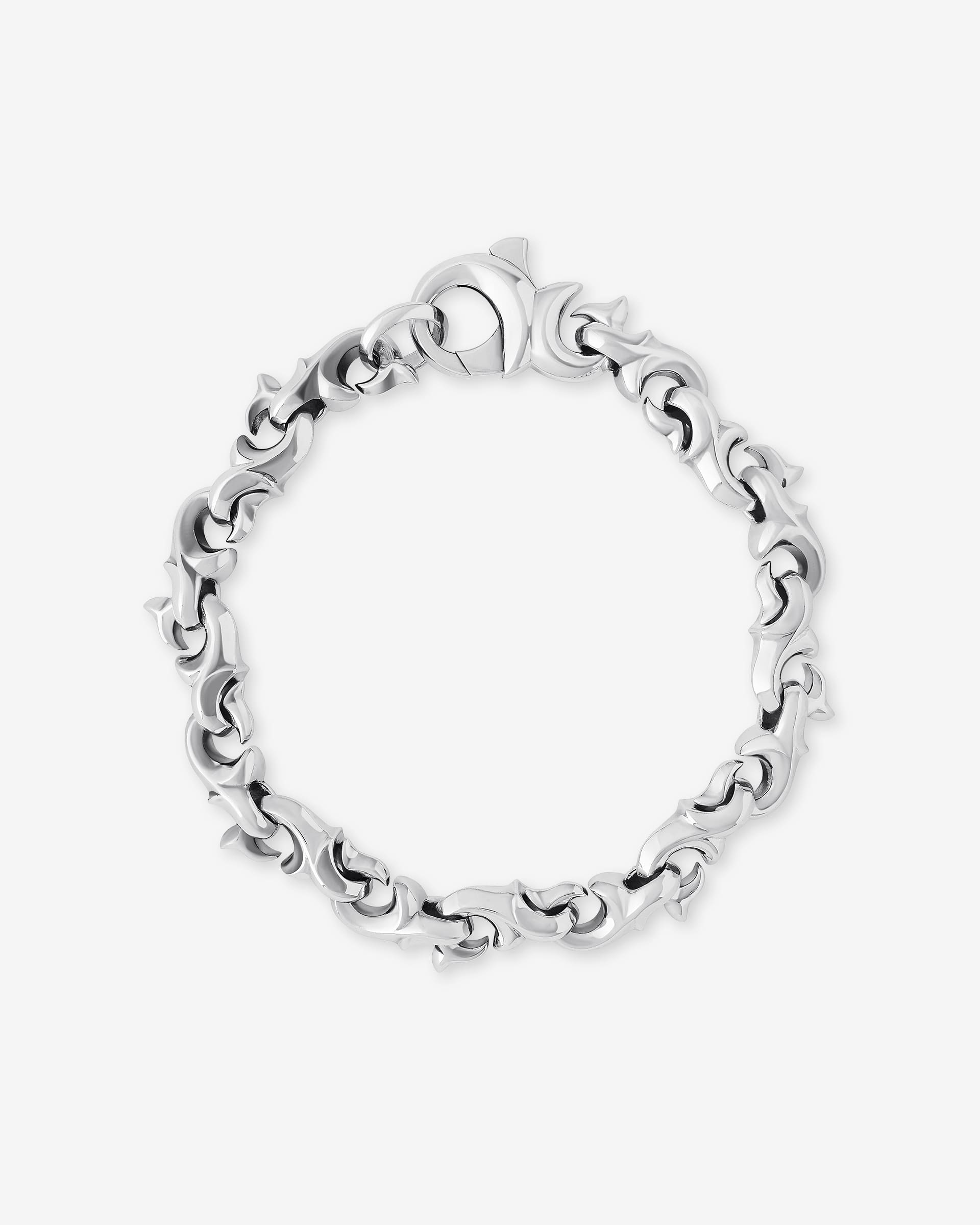 A bed of metallic thorns wrap around your wrist, the Thorn S Link Bracelet is crafted in recycled Sterling Silver.