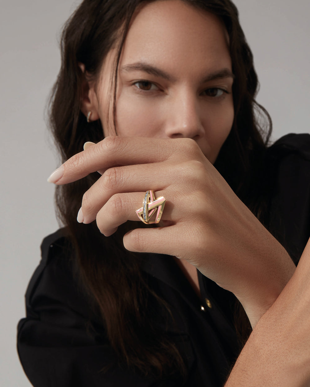 Nothing about ‘Vertigo’ is as it first appears. Drawing you into the maze, it will provoke dizziness and a sensation of spiralling uncontrollably toward a world of complete change. The ‘Vertigo’ collection combines strong angular lines, colour and extreme perspective to twist reality and create illusions of depth and dimension.