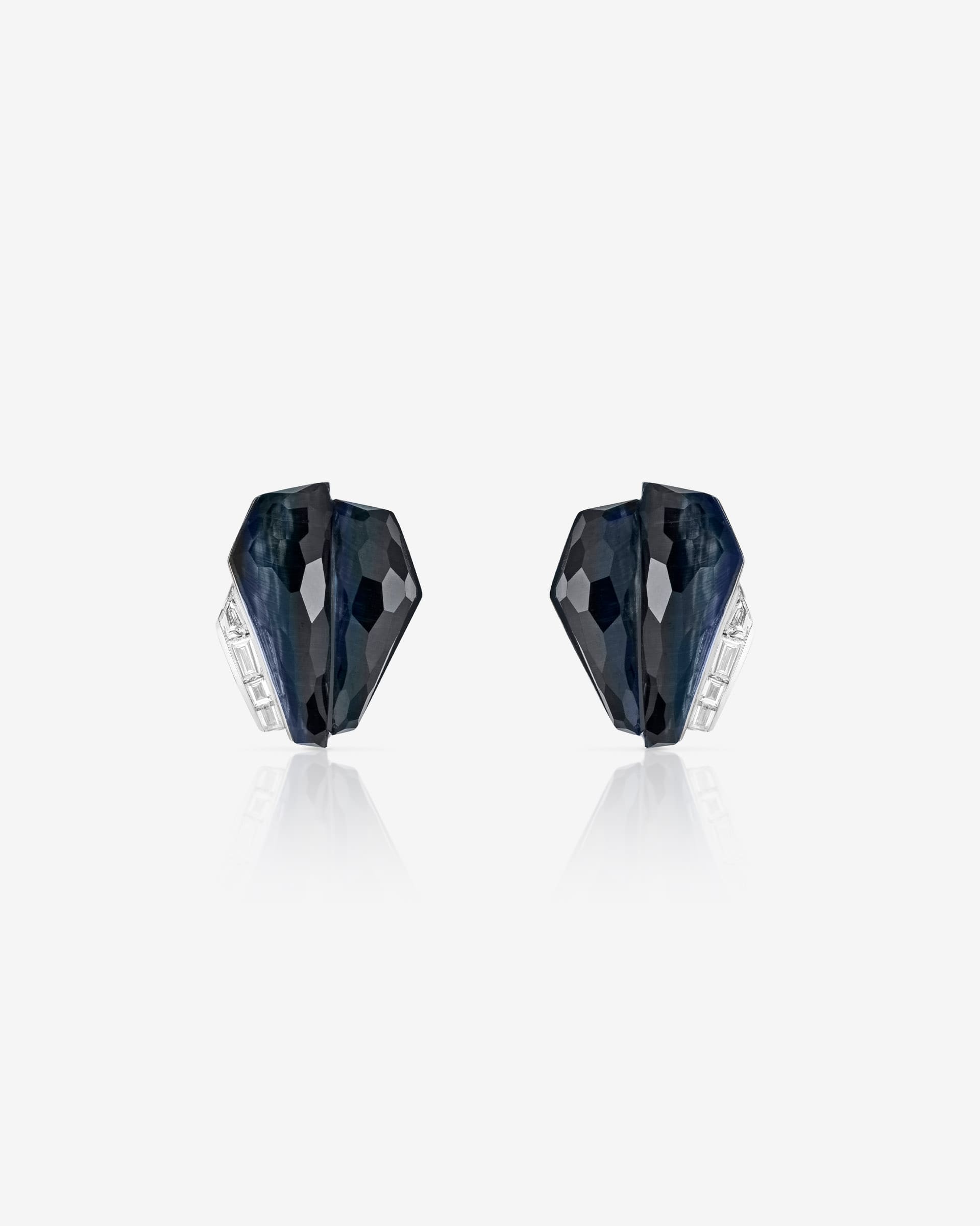 As light enters the Falcon's Eye Crystal Haze on the Cuff Earrings, the deep navy hues are intensified, perfectly contrasting with baguette cut White Diamonds for an contemporary look.