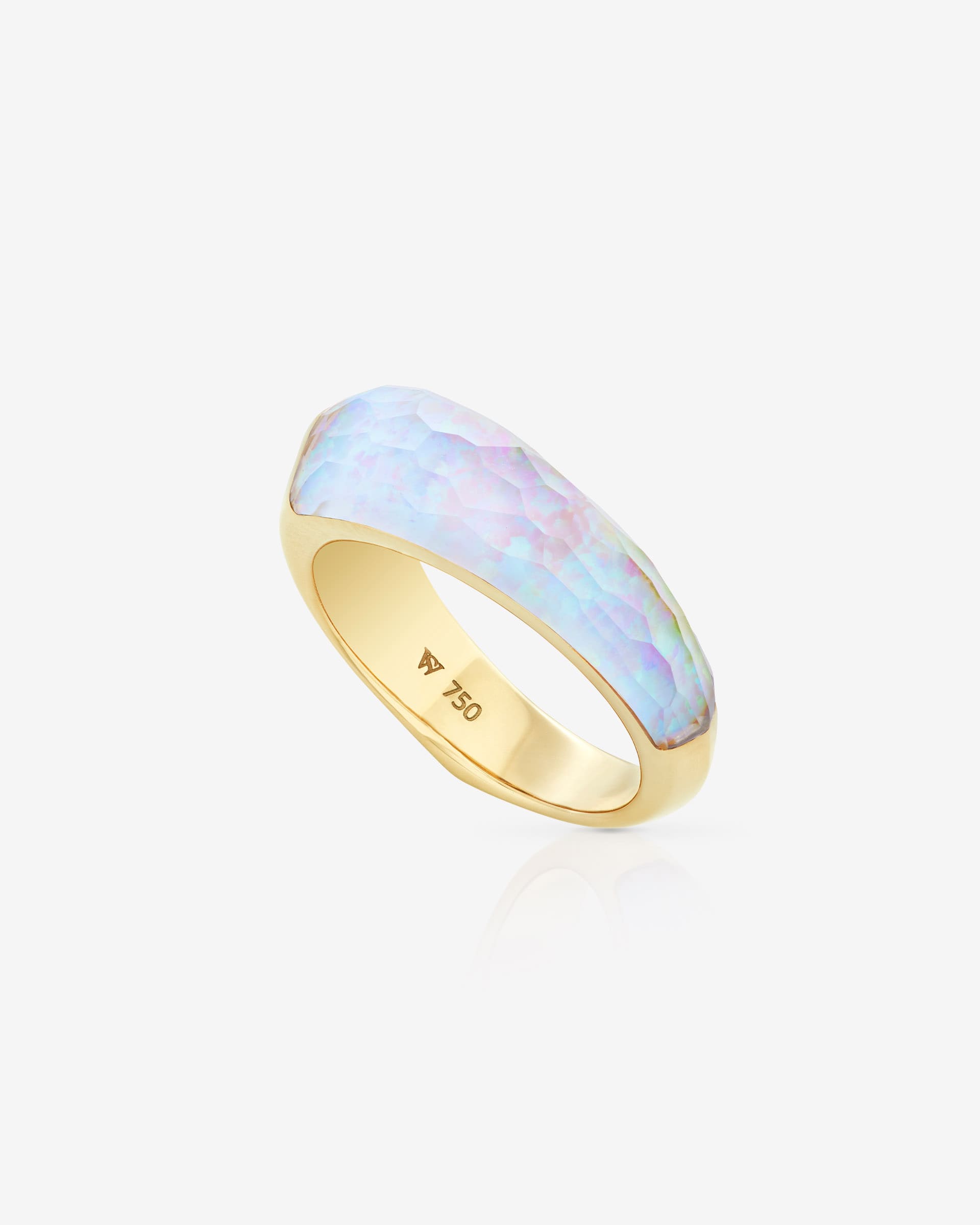 Aluminate your stack with the iridescence glow of White Opalescent Crystal Haze Stack Ring. Complement with the vibrant Green Agate Crystal Haze Slimline Shard Stack Ring.