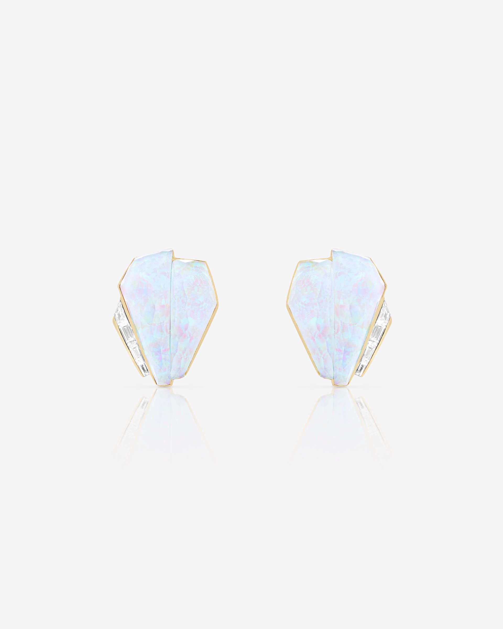 A contemporary piece for an everyday look, the Crystal Haze Cuff Earrings wrap organically around the ear with iridescent White Opalescent Crystal Haze and baguette cut White Diamonds.