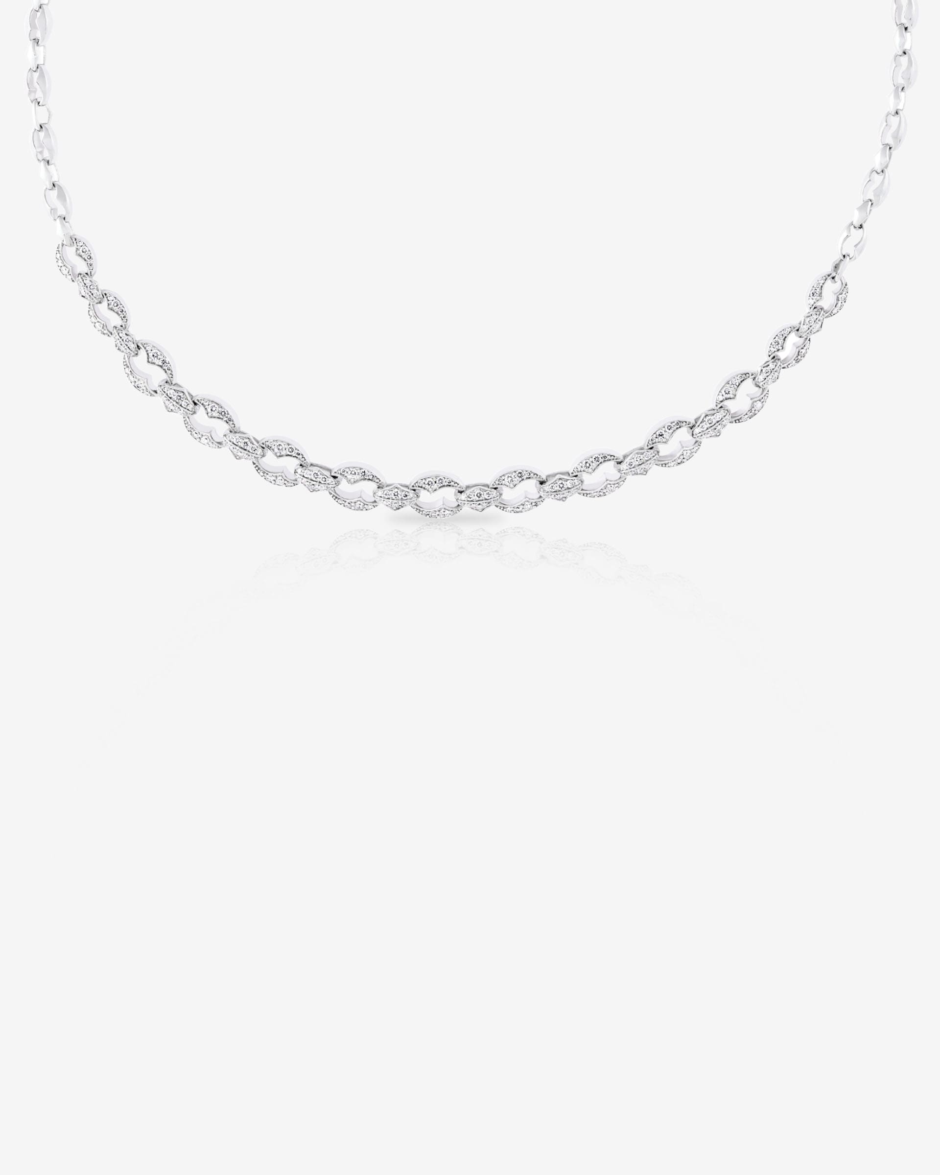 Fuelling modern romance, the Link Choker interconnects 18ct White Gold links with White Diamond pavé to create chain ready to be worn by itself or layered.