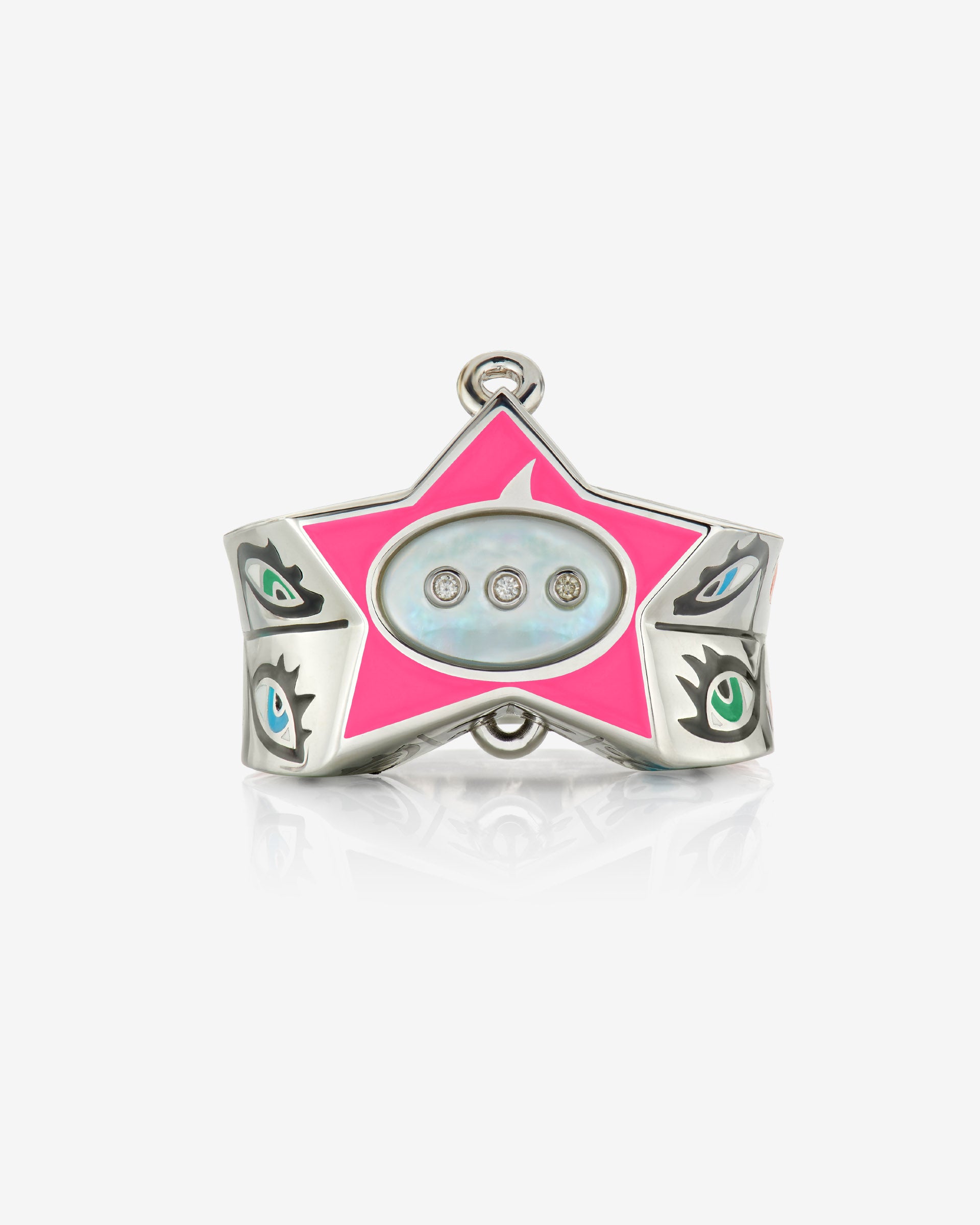 • Close-up of pink enamel star and sterling-silver finish on Stephen Webster × Machine Gun Kelly Gossip Ring