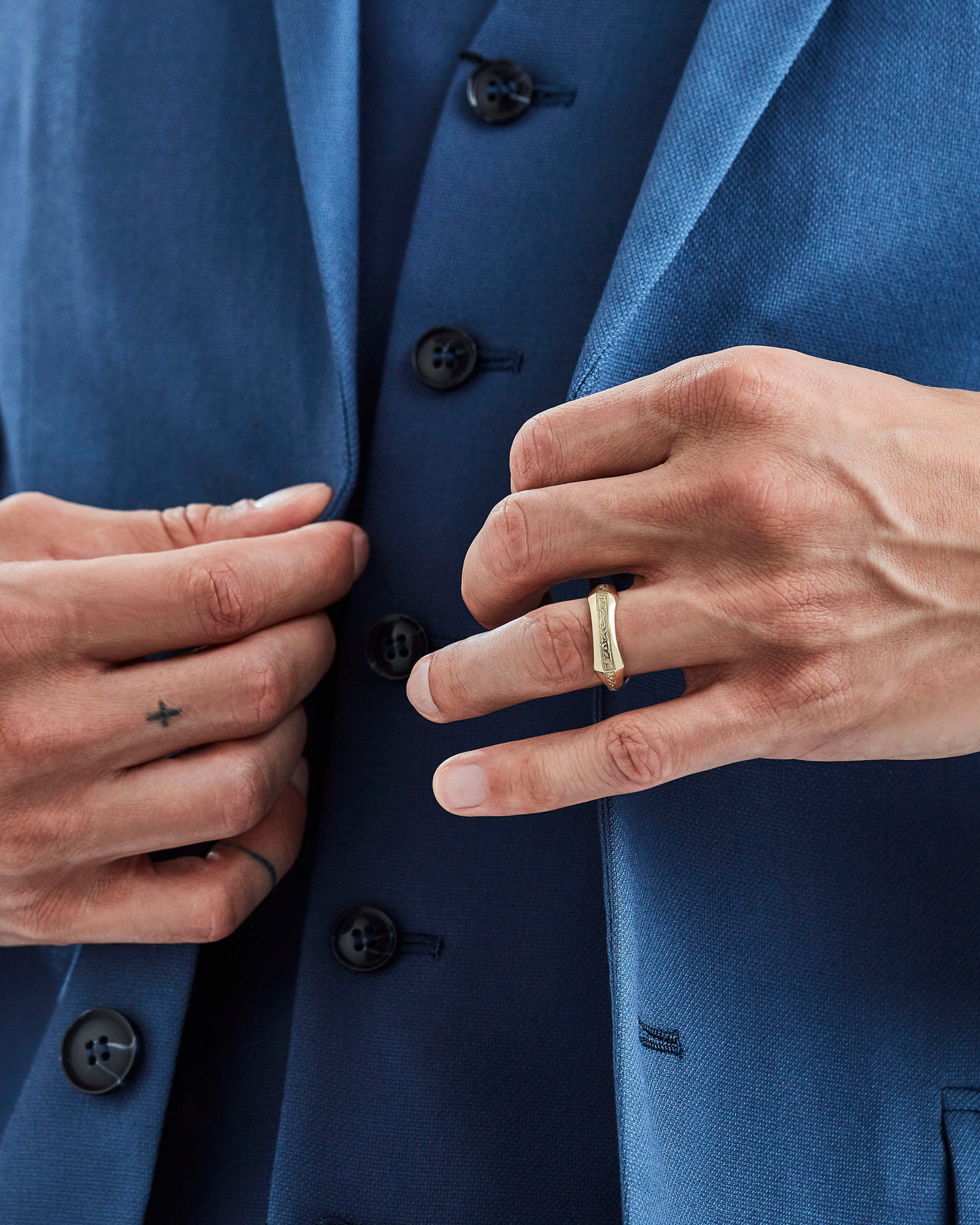 Our collections are crafted with recycled gold and silver, offering Fairtrade Gold and Single Mined Gold by request for bespoke commissions, with diamonds certified by the Kimberley Process Certificate Scheme.
