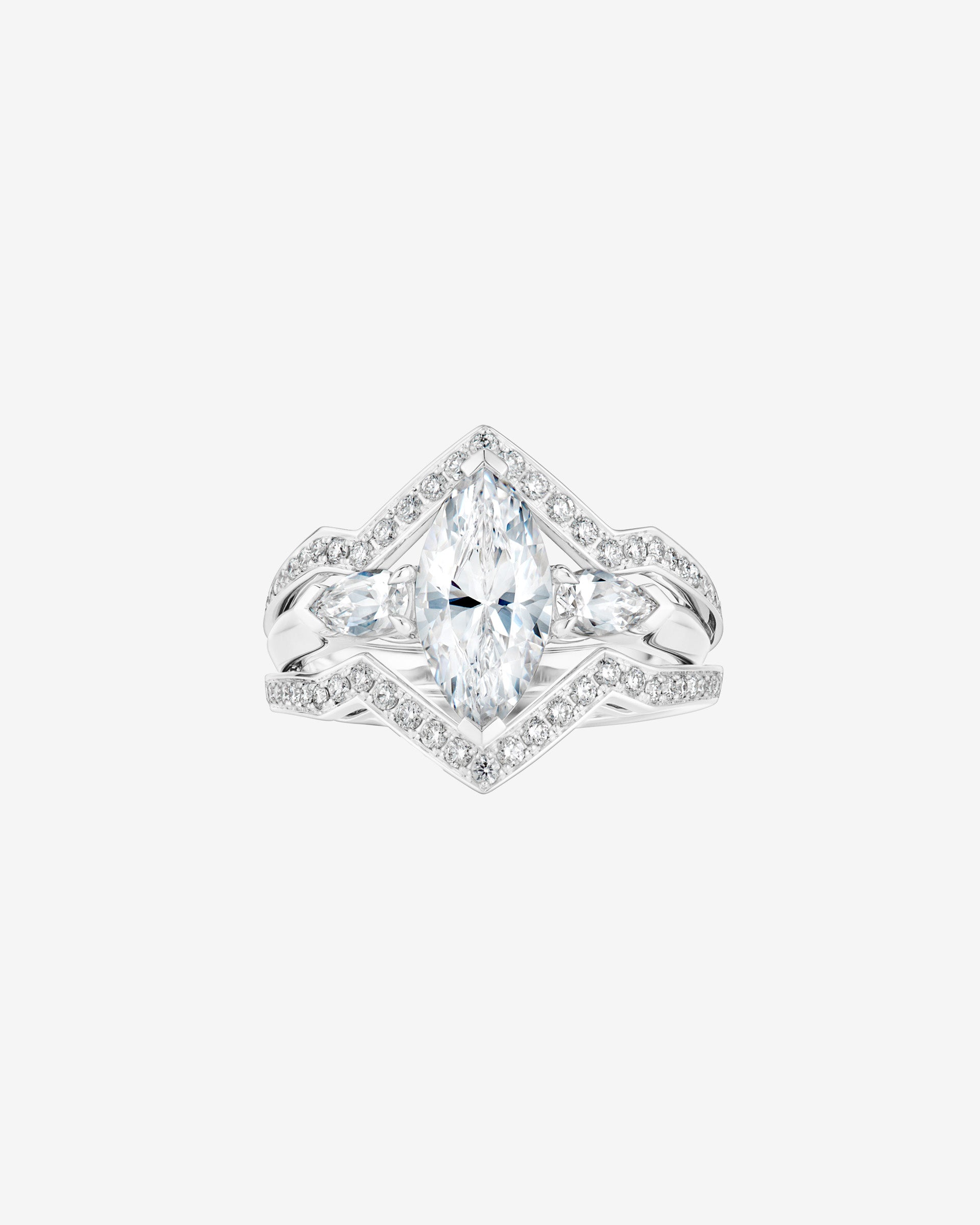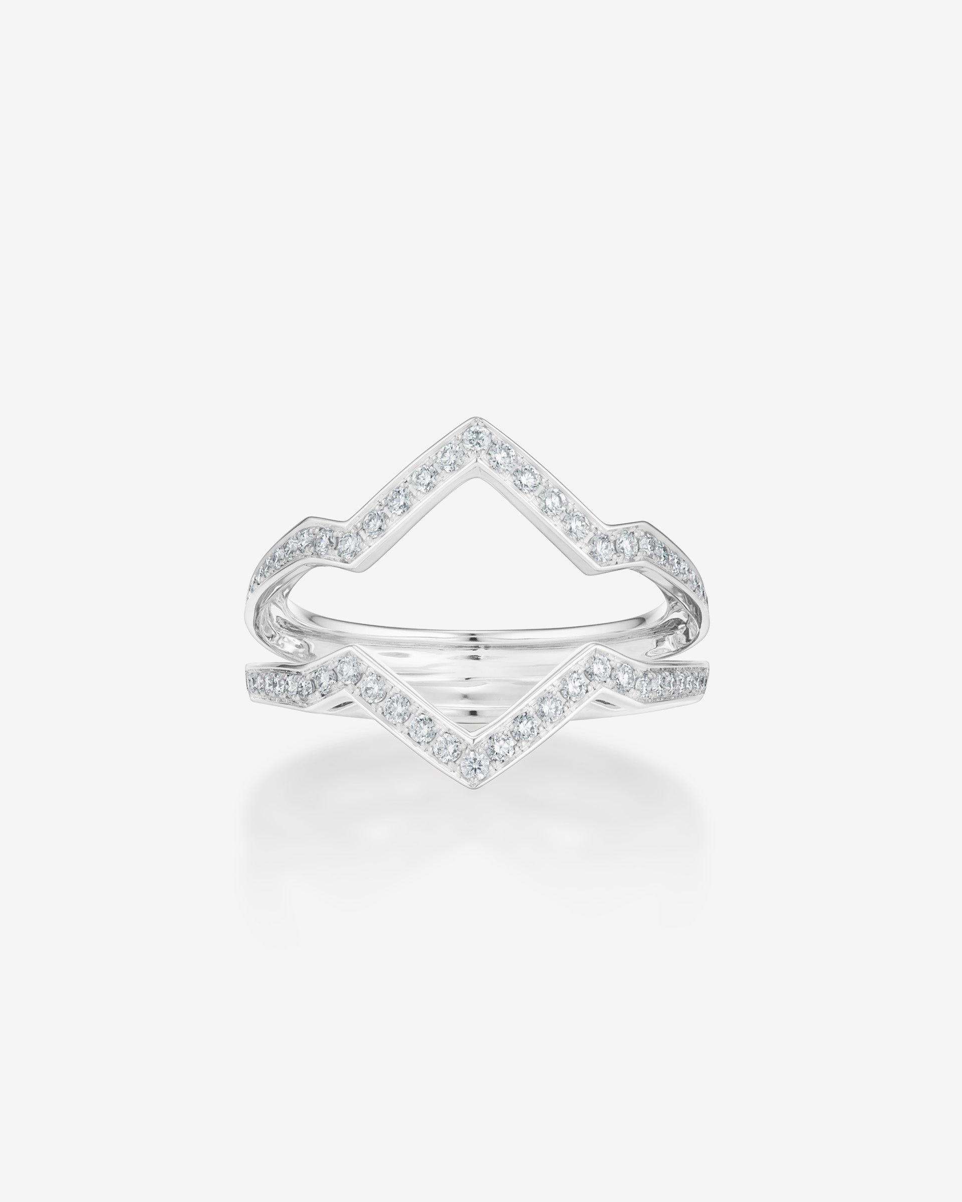 The 'Band Together Outer Ring' references bold, lightning bolt motif, from the legendary David Bowie's famous alter ego; Ziggy Stardust. Crafted in 18 carat white Gold, with white Diamond pavè.