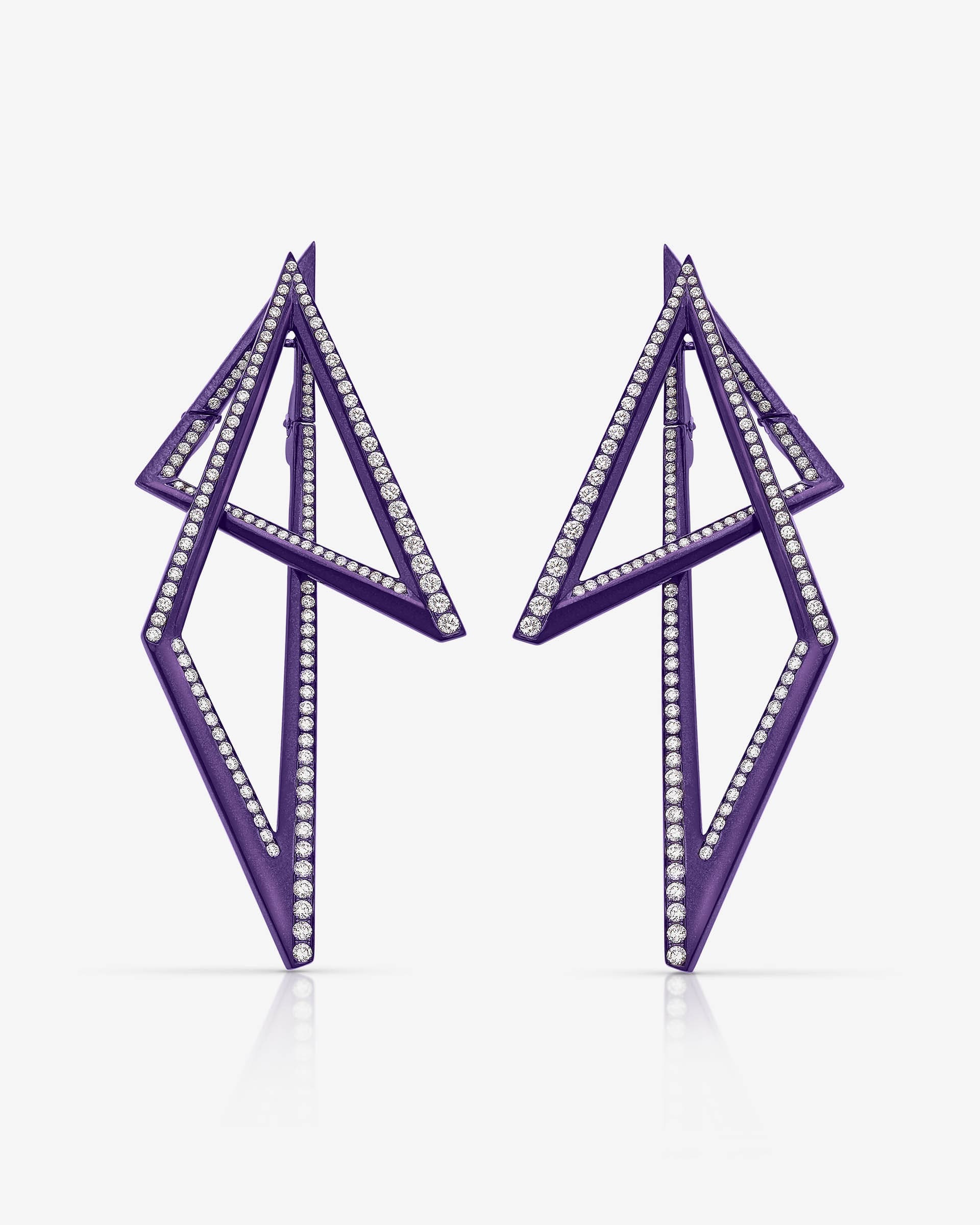 Wrapping infinitely around the Vertigo Infinity Earrings, lightweight purple titanium with white round Diamonds gives a new illusion in the third dimension.