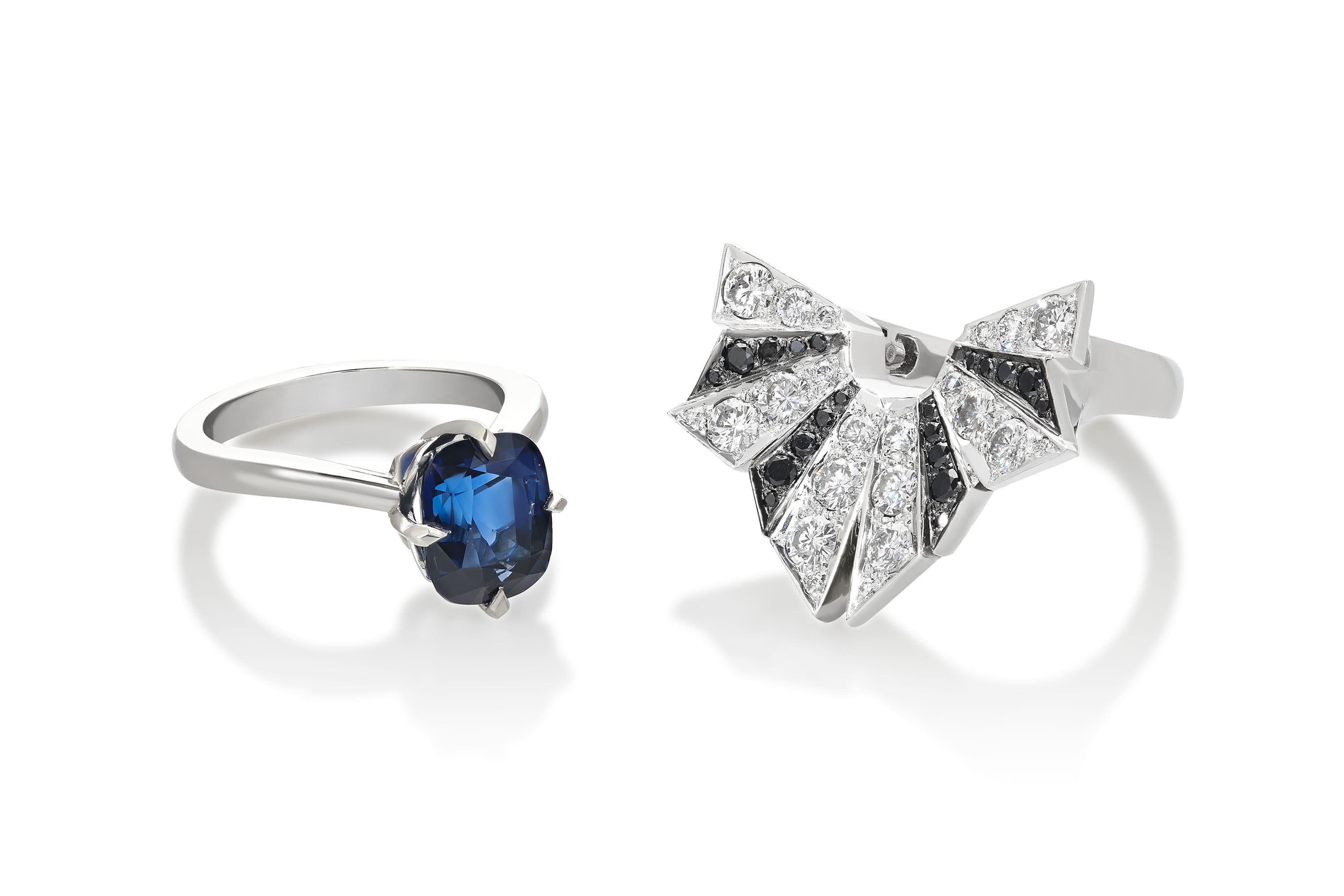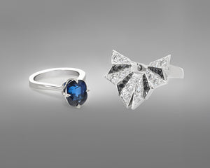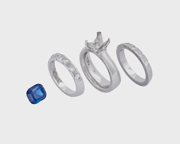 Our latest RESET project came into our workshop as a Platinum solitaire with a central Blue Sapphire. The central gemstone was set in a plain band that demanded a modern Webster twist.