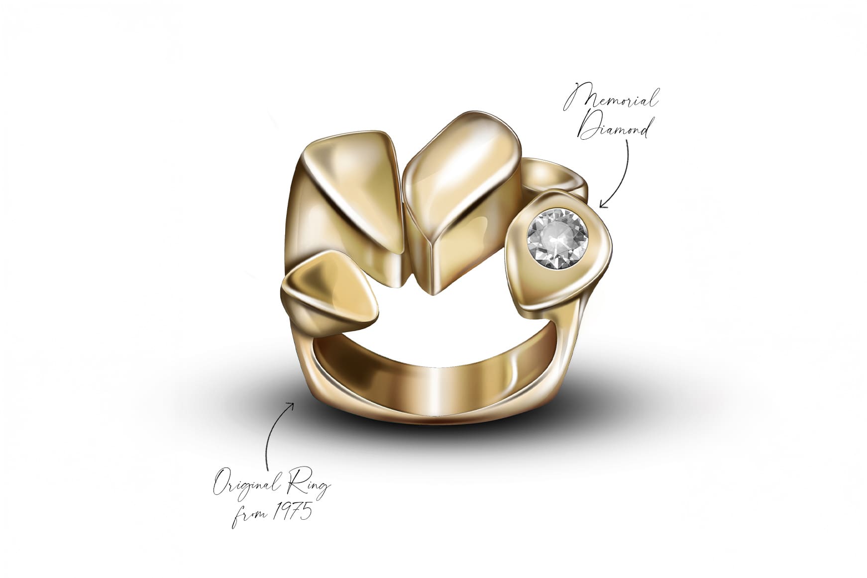 Jessie came to Stephen Webster with her mother's extraordinary wedding ring from 1975. The piece was a memento of her mother, who recently passed away.
