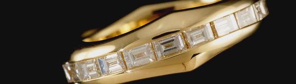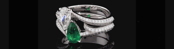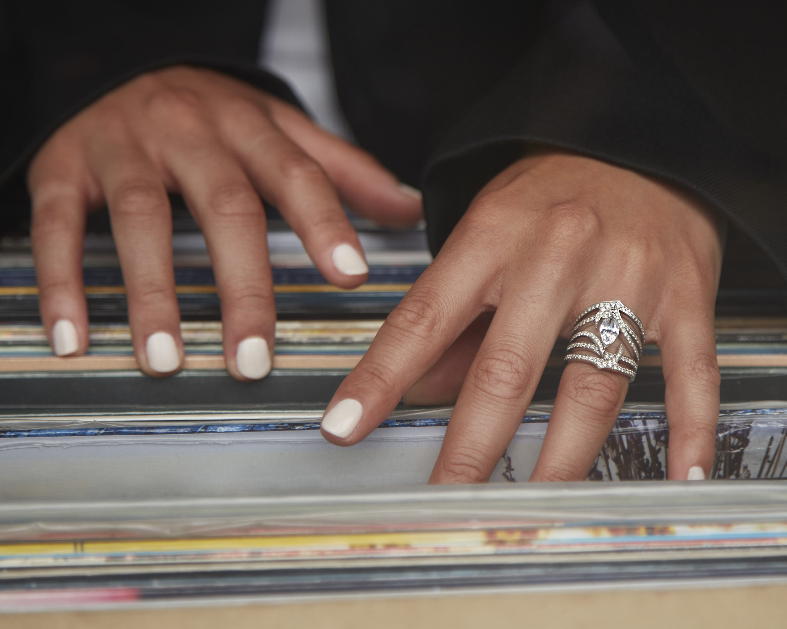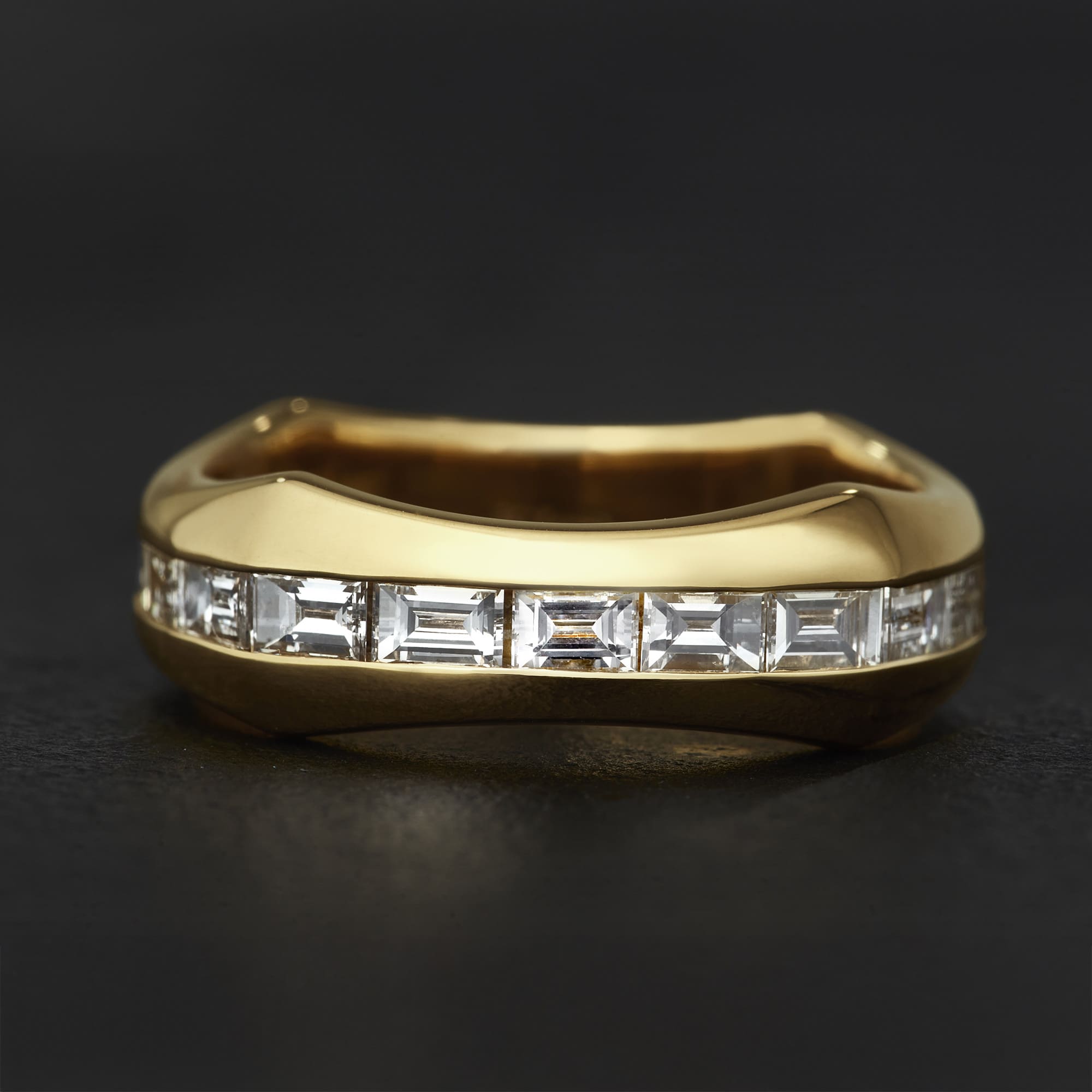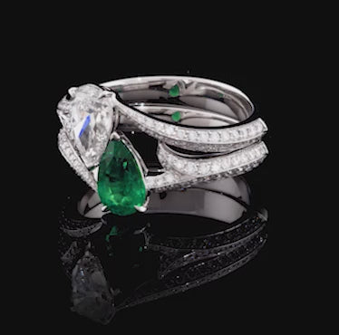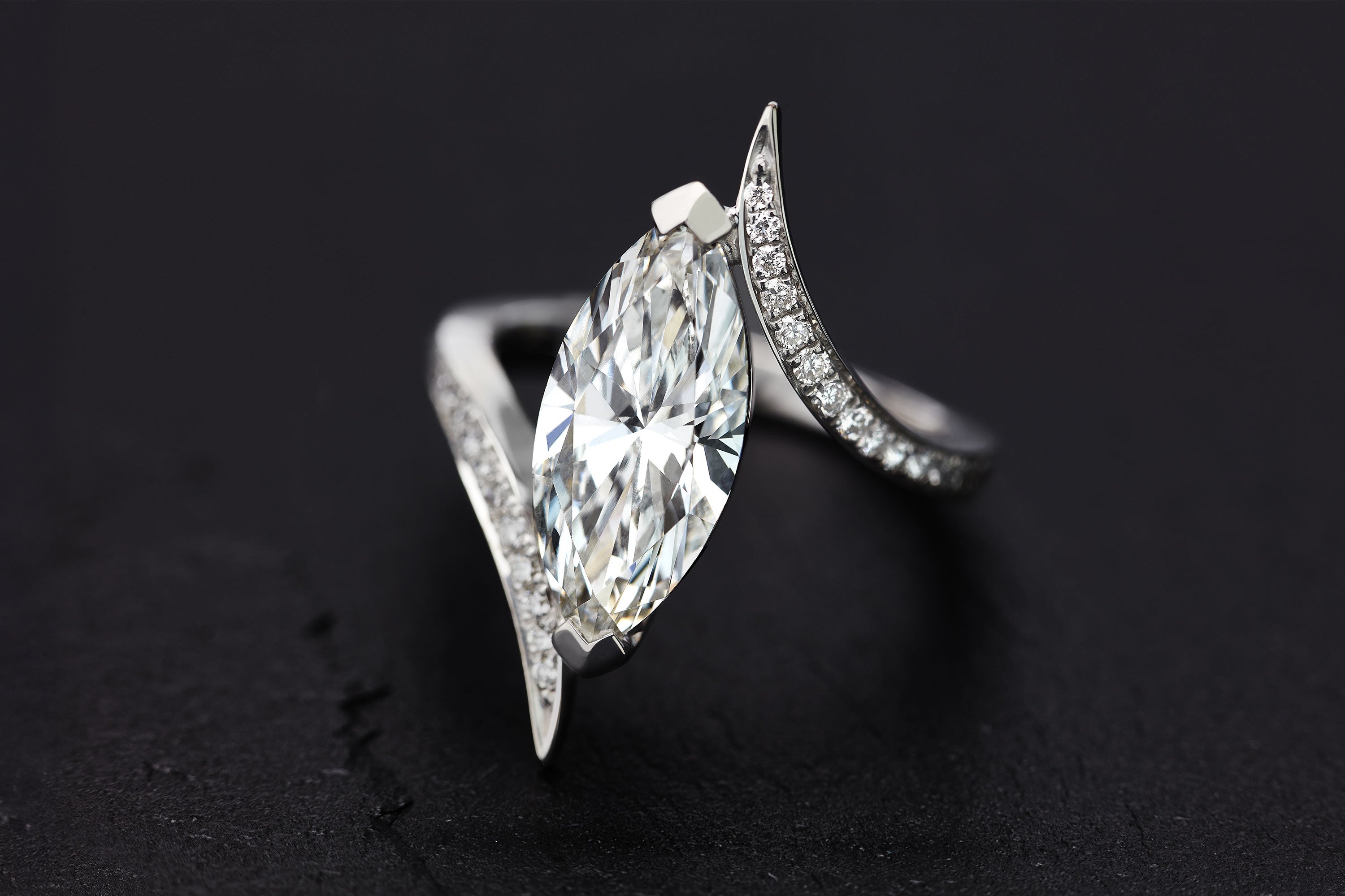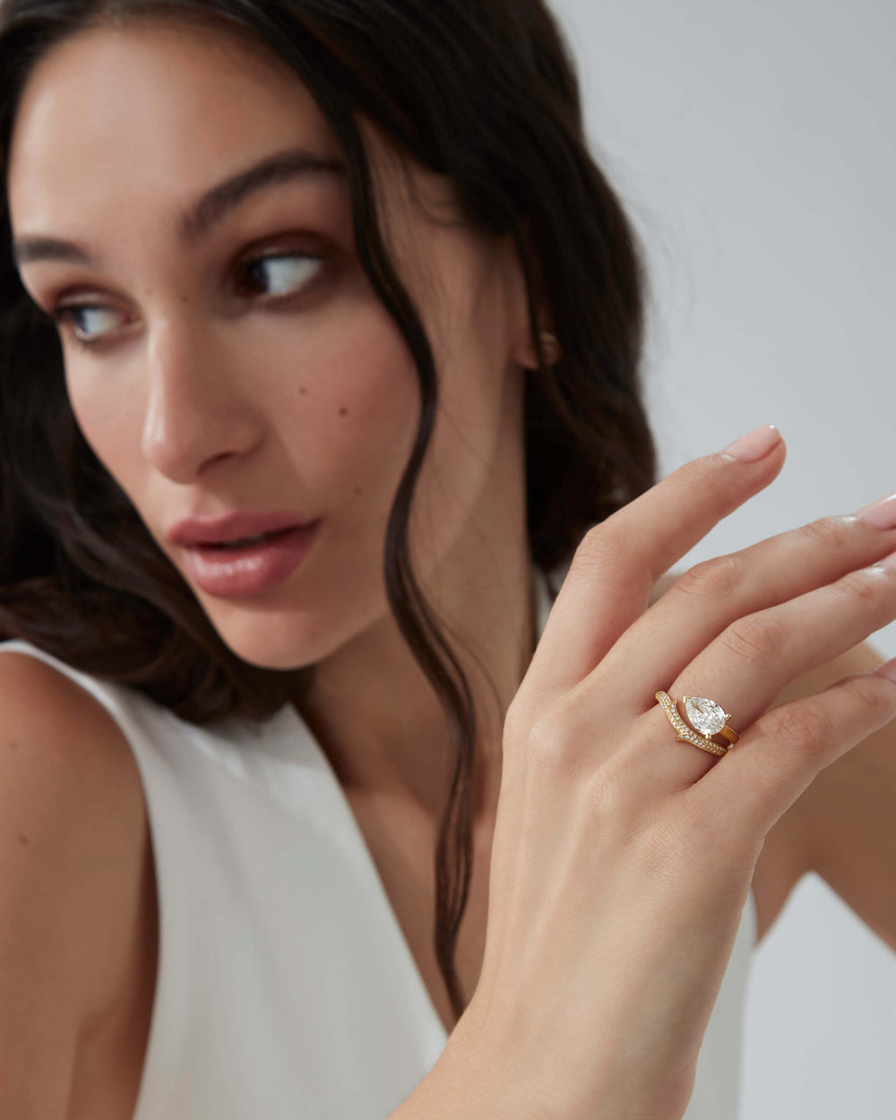 Rather than change perception, we embrace it, with the possibility of a ‘Party Jacket’. Unlike a Wedding Band, the ‘Party Jacket’ allows you to frame your engagement ring symmetrically, adding further volume and glamour to the piece.