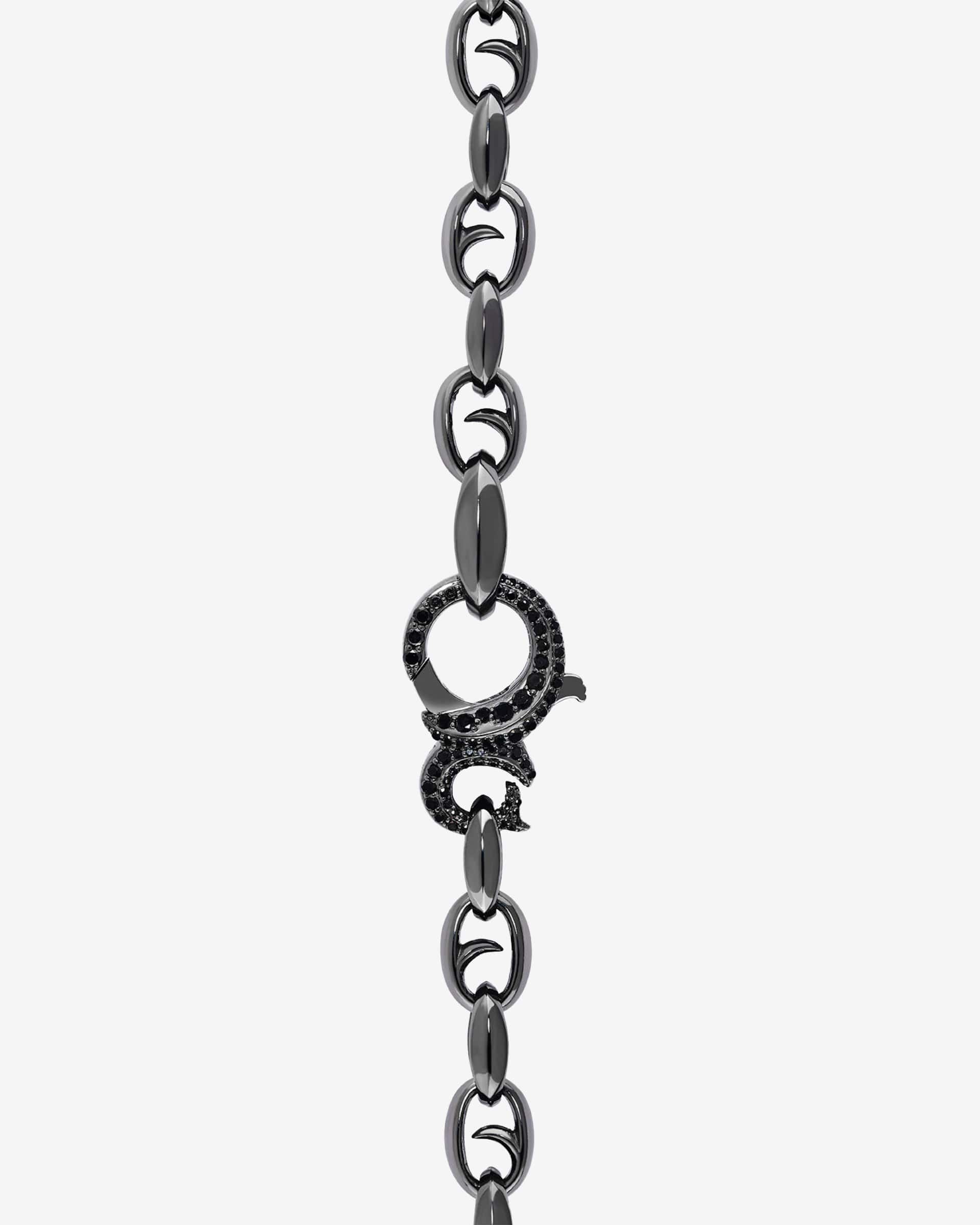 A statement by itself or ready to be layered, this black rhodium plated Sterling Silver Classic Link Chain features a bed of thorns throughout the 22-inch chain and is finished with a black Diamond set clasp.