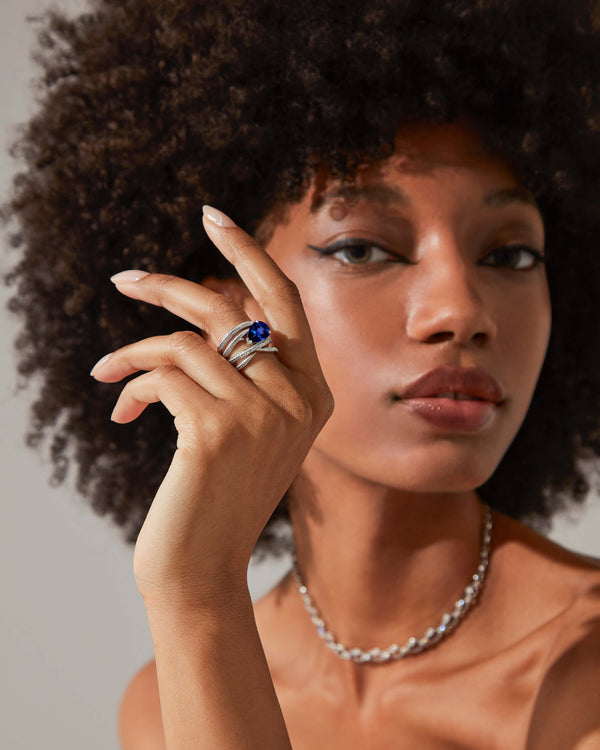 Pain is pleasure with the Entangled Band Ring; set with a central pear-shaped Tanzanite, lying in a bed of White Diamond pavé thorns, celebrating a new era of modern romance.