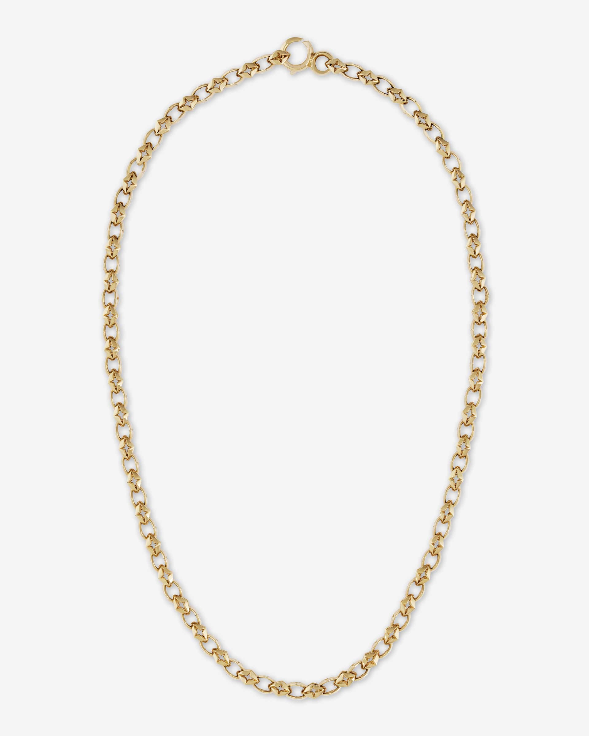 The New Cross motif is the latest edition of Stephen Webster's symbolic Cross selection and is seen on the body of the Flipside Sovereign Ring with a stand out 3D finish elevating the design details. Set on an 18ct yellow gold chain, the New Cross motif can be seen hand-detailed into the chain.