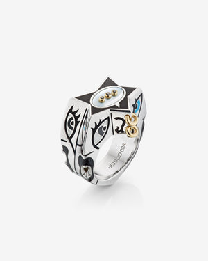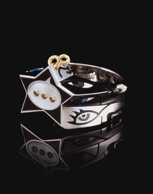 Limited to a total production of 640 pieces, across 8 colour editions, the GOSSIP Ring in Sterling Silver is visualised with three dimensional mouths, eyes and ears captured midst careless whisper. With social media often the culprit for amplifying hearsay, messenger speech bubbles are incorporated into the design showcased on top of the ring.