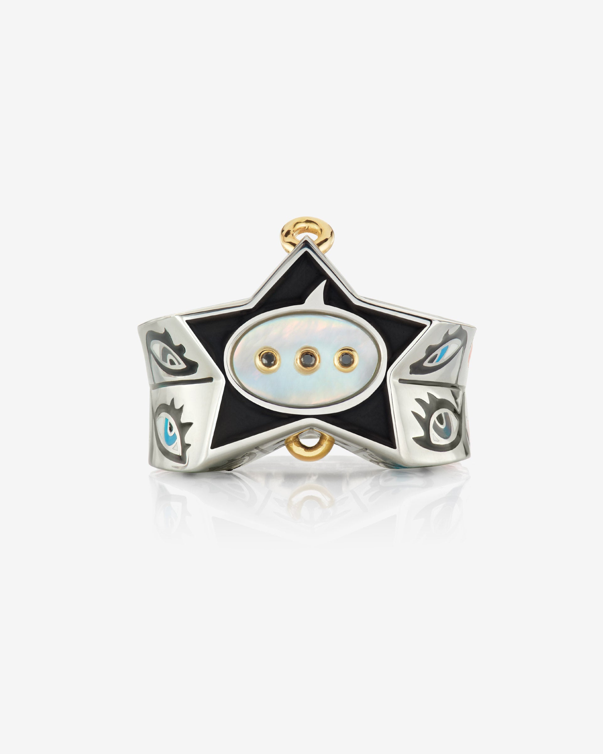 • Stephen Webster × Machine Gun Kelly Gossip Ring Edition Eight in sterling silver with black and red enamel star — front view