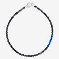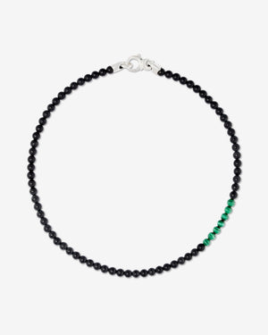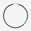 Adding a pop of colour the Thorn Beaded Necklace features Matt Black Onyx and an asymmetric detail of Malachite beads with a Sterling Silver clasp.
