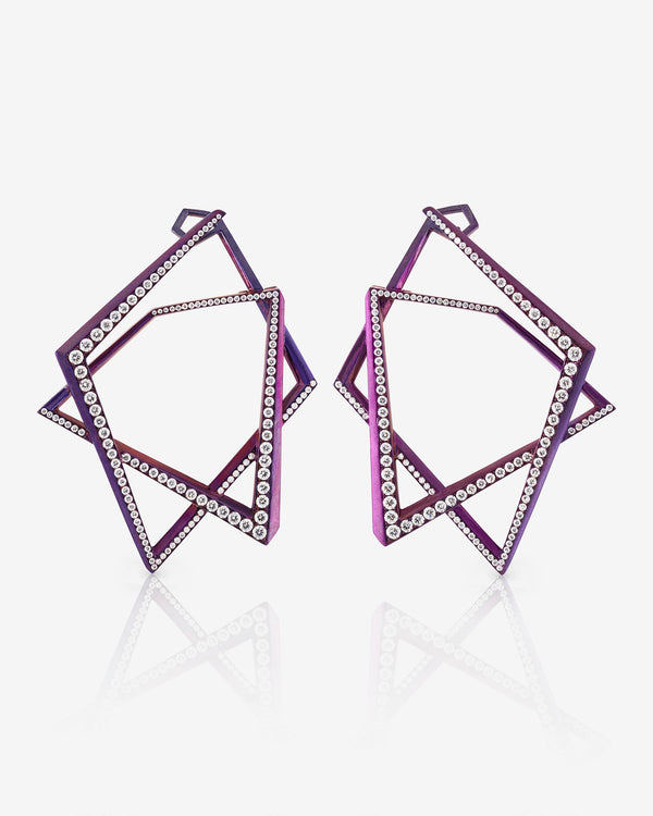 Combining lightweight pink titanium and round white Diamonds to create infinitely encircling hoops adding new dimensions with every wear.