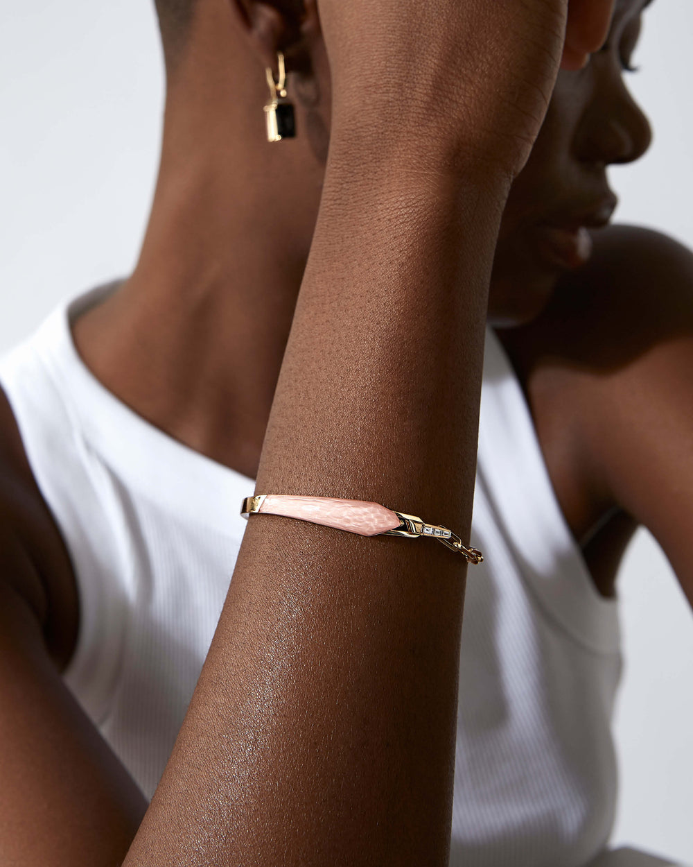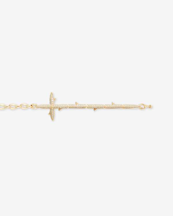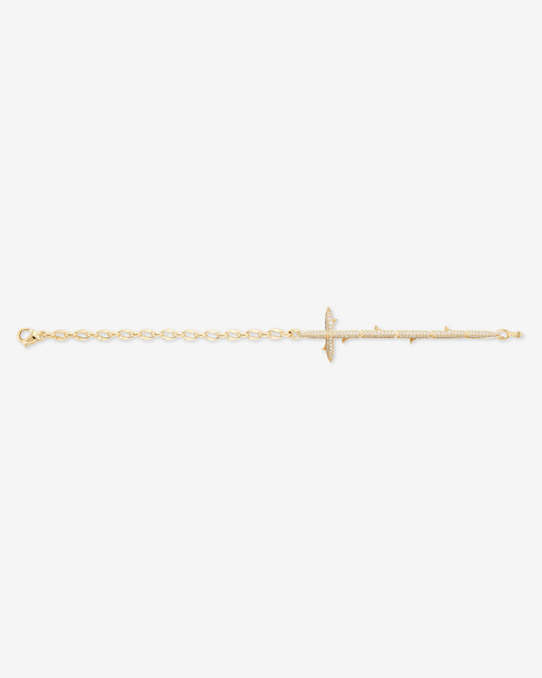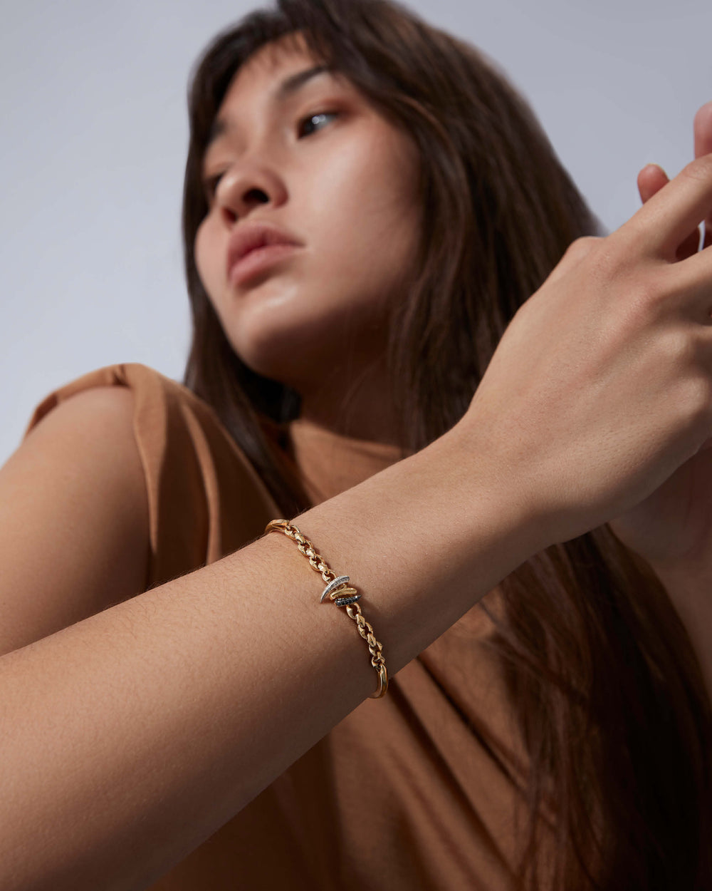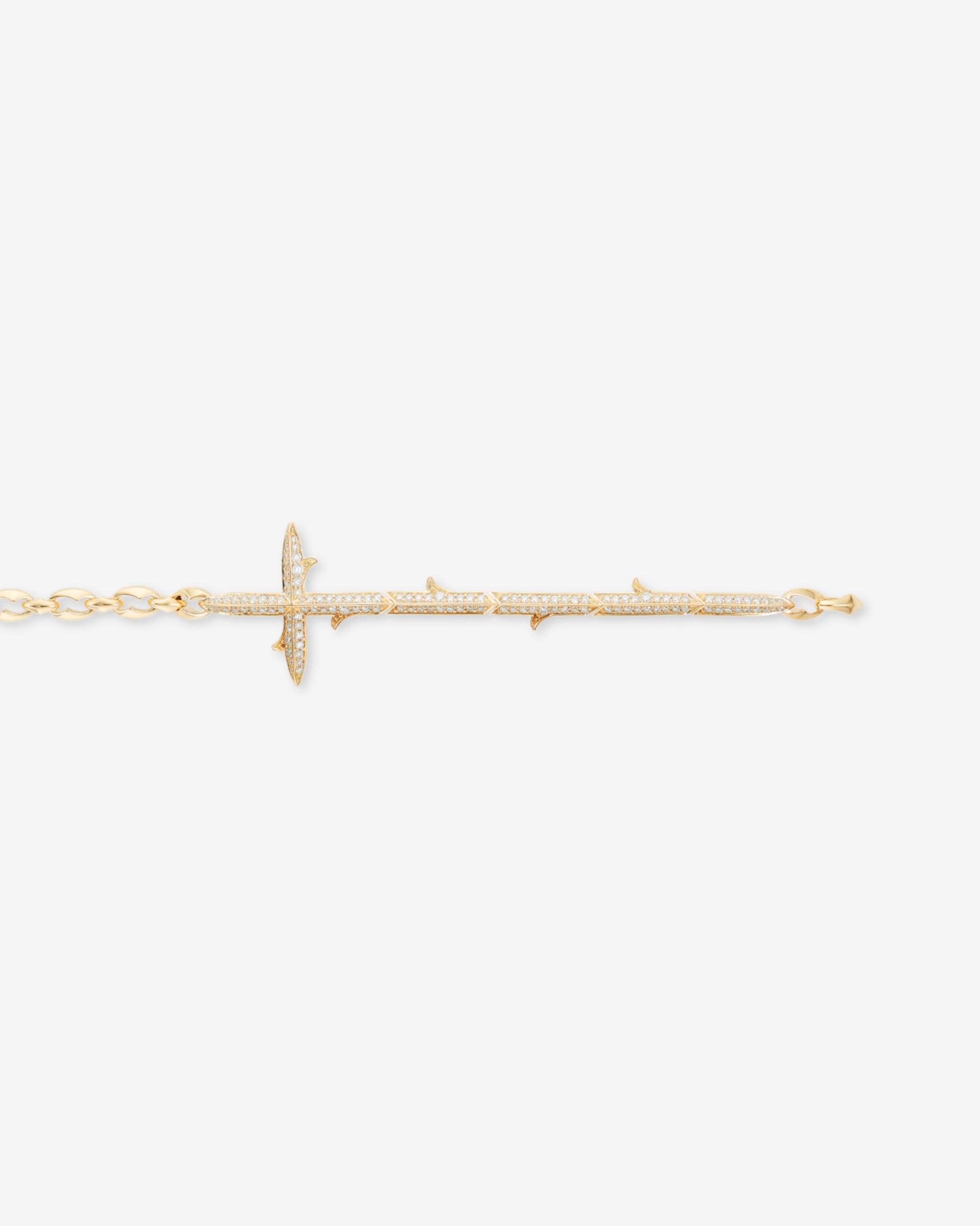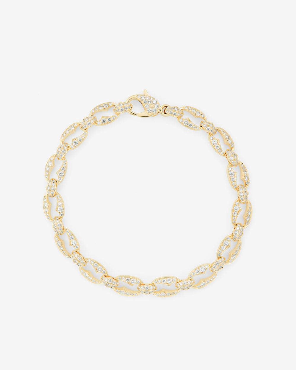 A cross of White Diamond pavé adds a touch of dark romance to the Very Cross Bracelet with a linked chain all set in recycled 18ct Yellow Gold.
