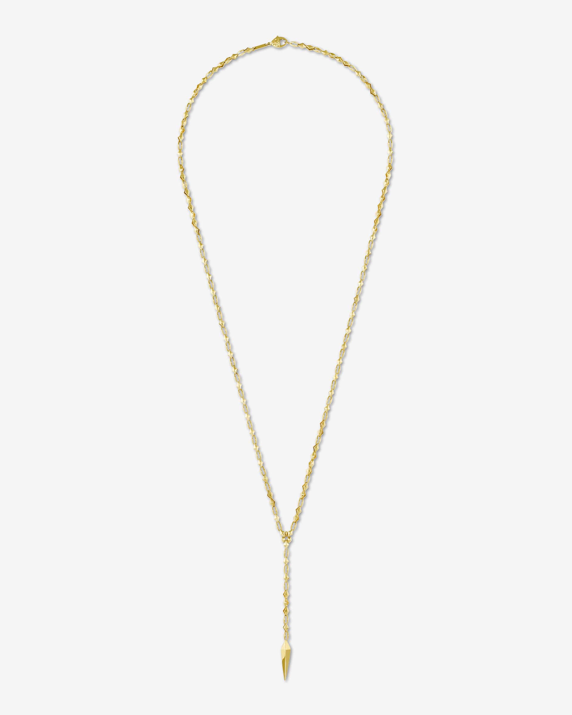 Featuring Stephen Webster's Thorn Dagger motif on a 4-inch drop set in 18ct yellow Gold with a 28-inch chain.