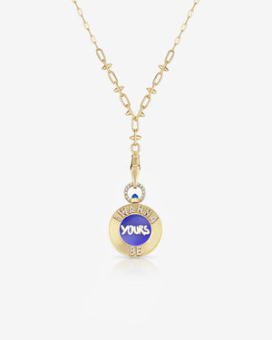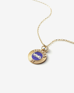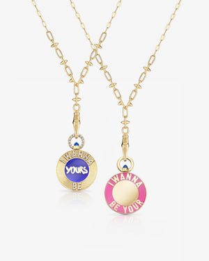 Handcrafted in 18 carat Gold with White Diamond pavé, much like a vinyl record this flip-pendant features an A side outer of 'I Wanna Be' with 'Yours' etched into a Blue Enamel centre. The B side Pink Enamel outer features 'I Wanna Be Your' with the centre left blank for your own personal message.