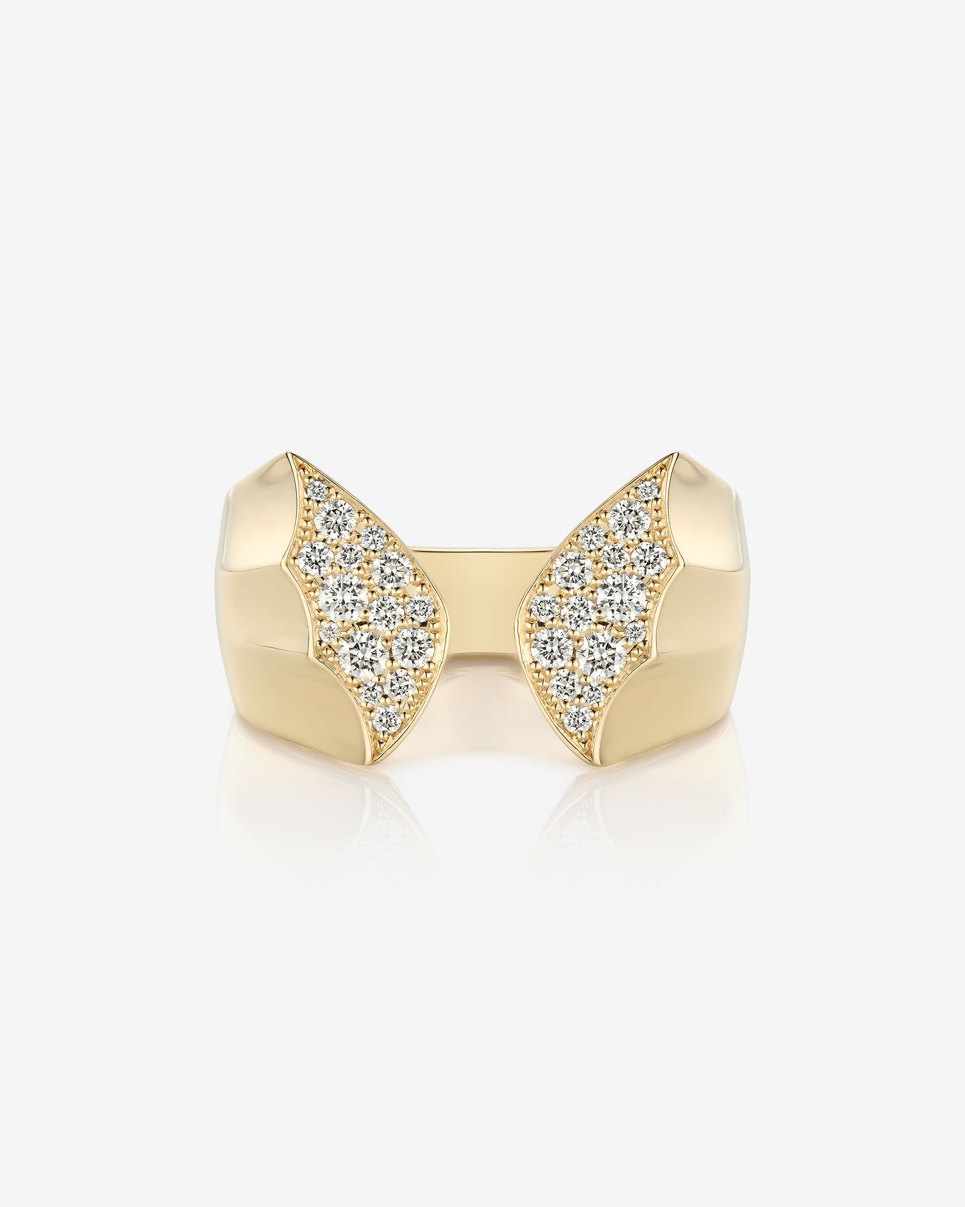 Symbolising transformation and freedom, the latest metamorphosis of the collection is its most stripped back and sculptural form yet. This ultra modern silhouette is cloaked in 18ct Yellow Gold and set with White Diamond pavé.